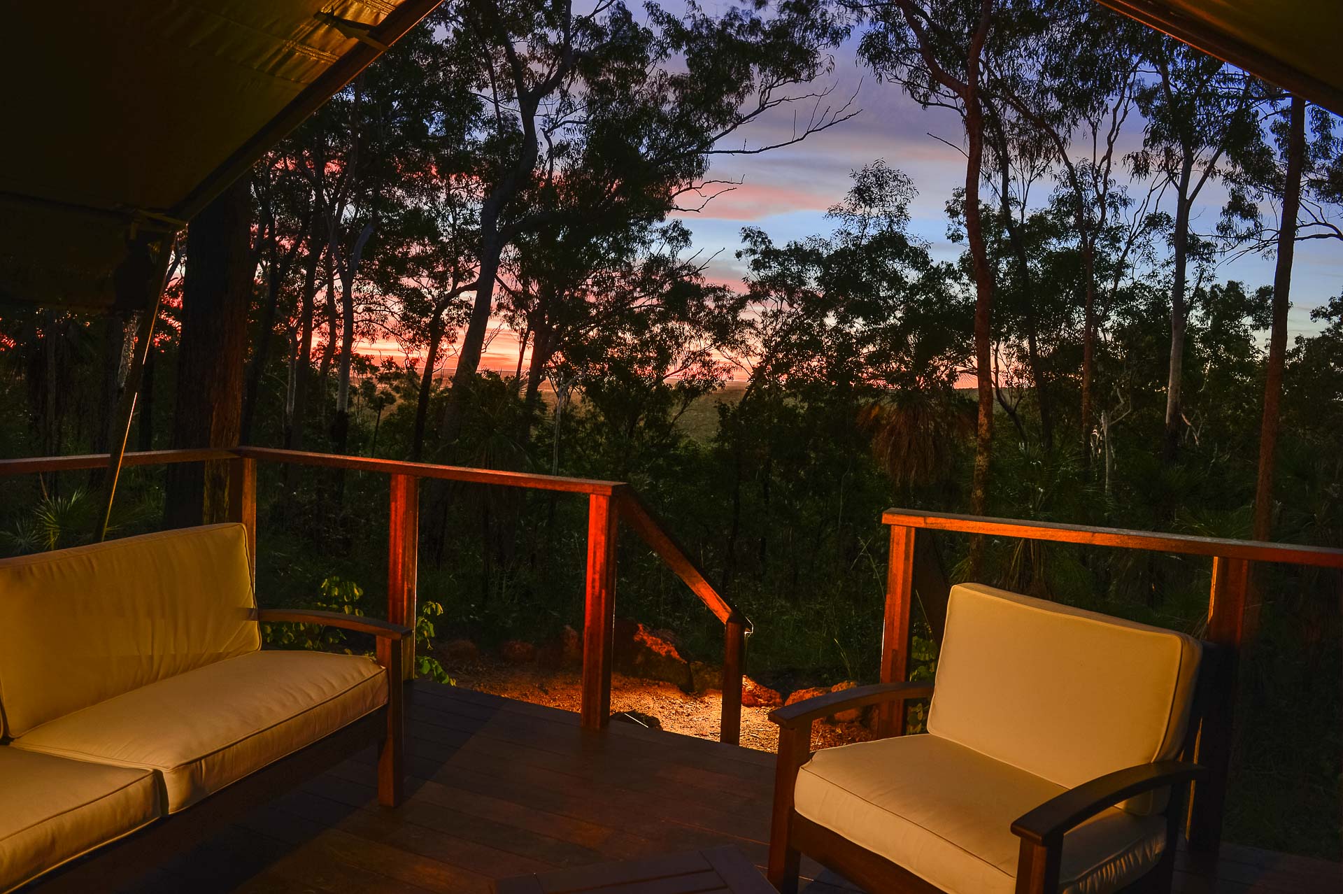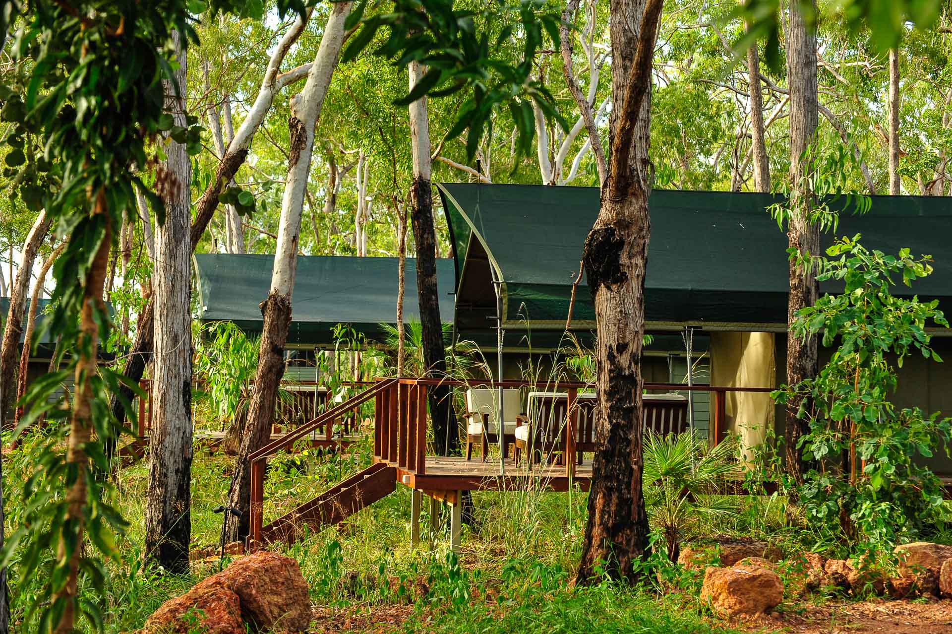 With spectacular views over the Tomkinson River floodplains, the Arnhem Land Barramundi Lodge enjoys an enviable location just a short drive out of Maningrida. Purchased and redeveloped by Outback Spirit in 2015, the lodge features 12 luxury tented safari suites, each integrated seamlessly with the surrounding bushland. Features include luxury furnishings, a private balcony and ensuite bathroom. Our restaurant is also dedicated to your indulgence, providing delicious high-end cuisine, which could even include your catch of the day!