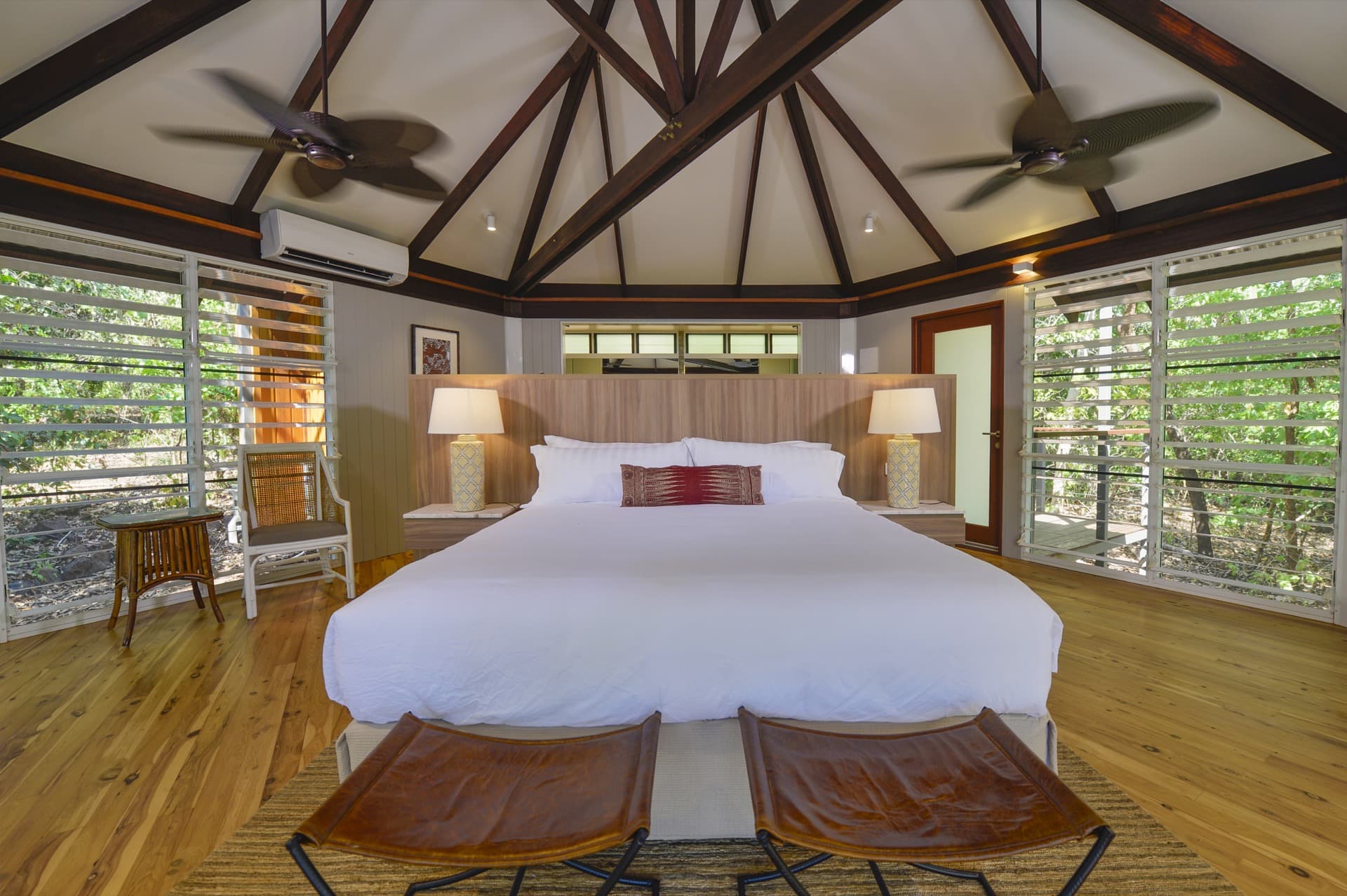 Your villa features air-conditioning, premium furnishings, and a covered private deck overlooking the beautiful natural bushland.