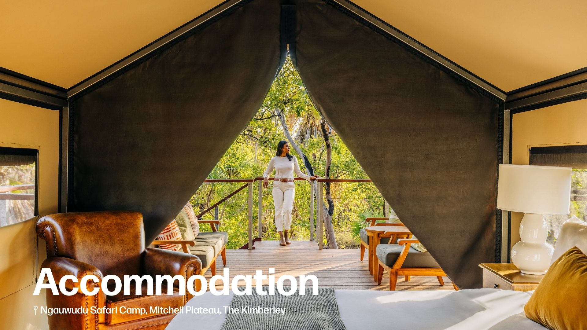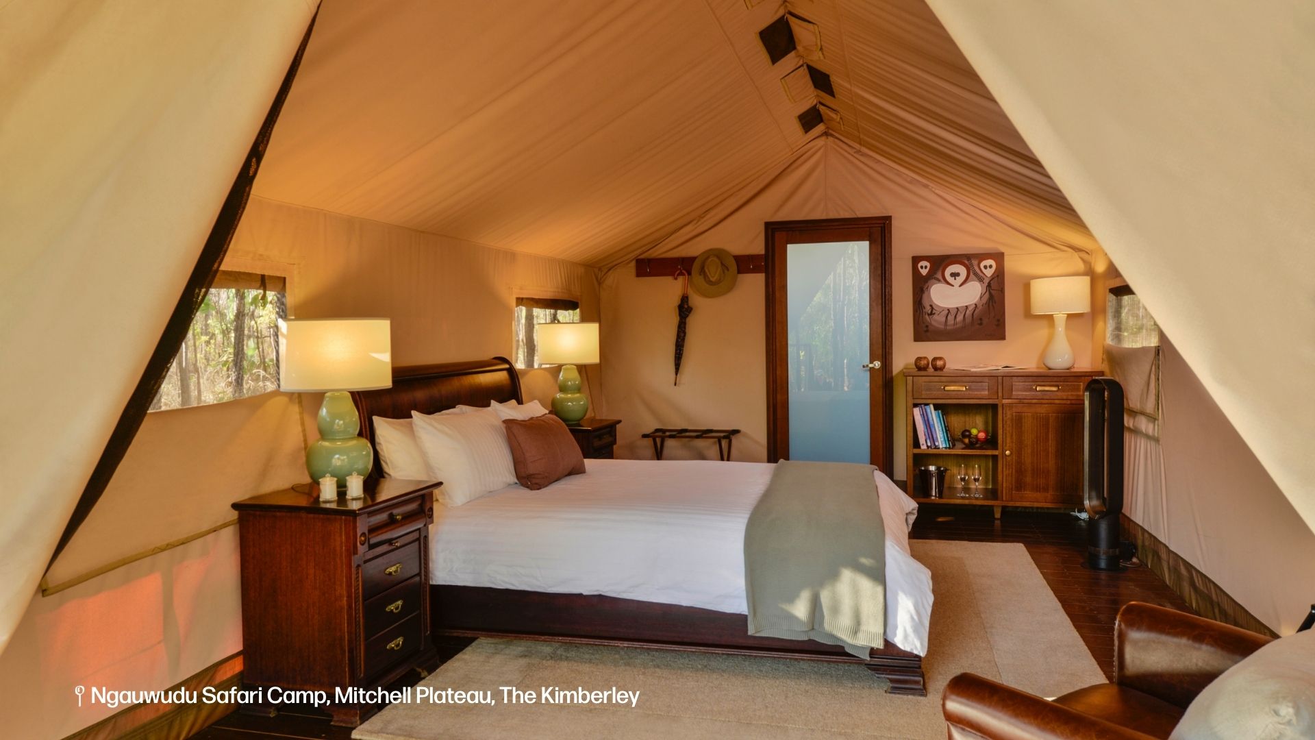 A true piece of outback luxury, Ngauwudu Safari Camp features deluxe Safari Suites with ensuite bathrooms and quality furnishings. Built in 2011 at a cost of $4 million, it is the most luxurious and substantial tented safari camp in the entire Kimberley. Enjoy two nights here as we discover the Mitchell Plateau and Mitchell Falls. Meals: B.L.D
