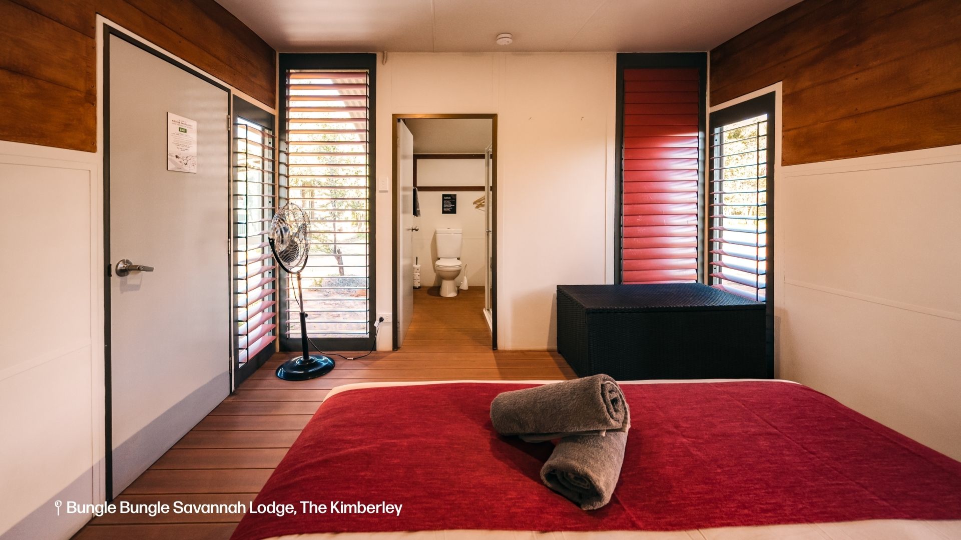 We'll spend the next two nights at the Bungle Bungle Savannah Lodge, owned by Outback Spirit in partnership with Aviair/Helispirit. The lodge features comfortable cabins with ensuite bathrooms and is the only lodge in the park with a swimming pool. Meals: B.L.D