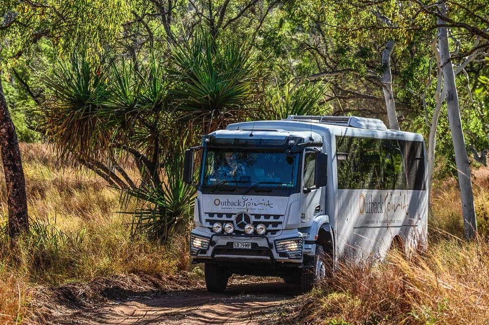 This morning we make our way back to the Gibb River Road before stopping to explore Galvans Gorge. After a swim we'll continue along the Gibb, heading past Mount Barnett and on to the Kalumburu Road where we begin heading north.