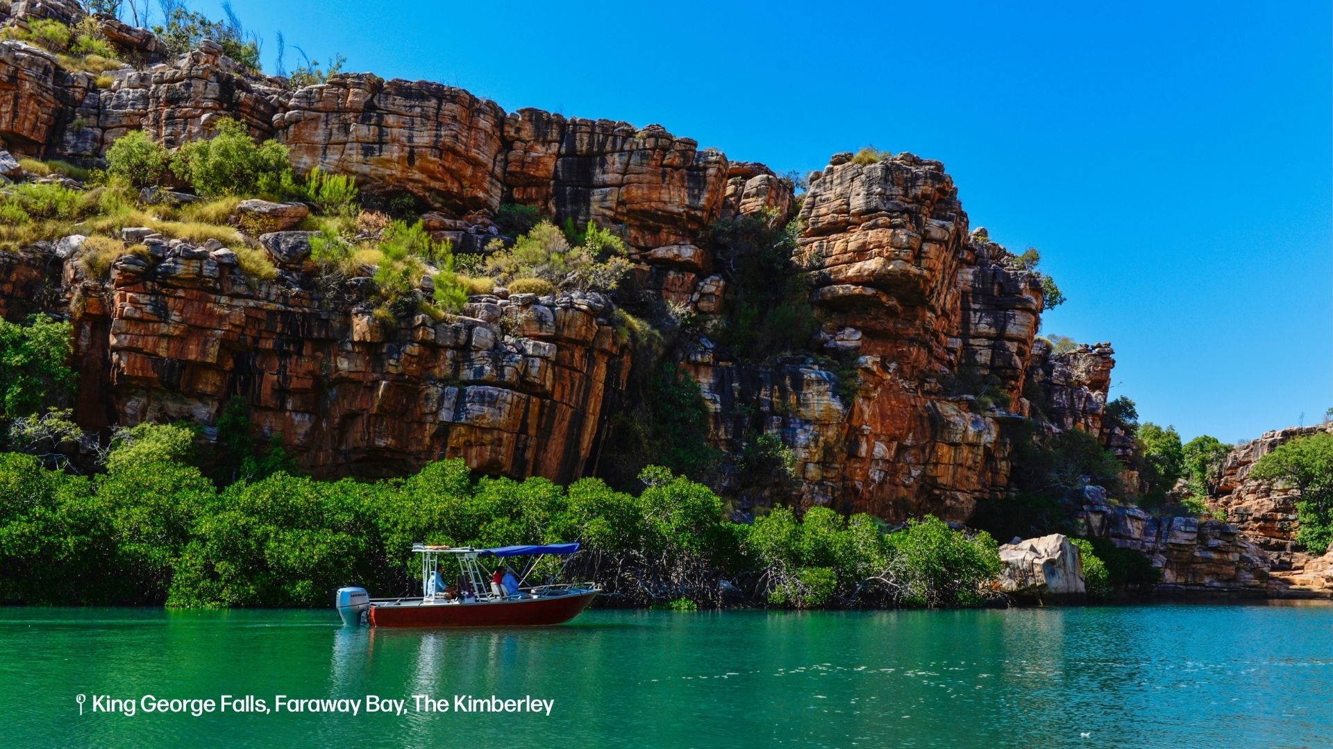 At the entrance of the King George River, you can’t help but feel dwarfed by the towering red rocky cliffs rising high