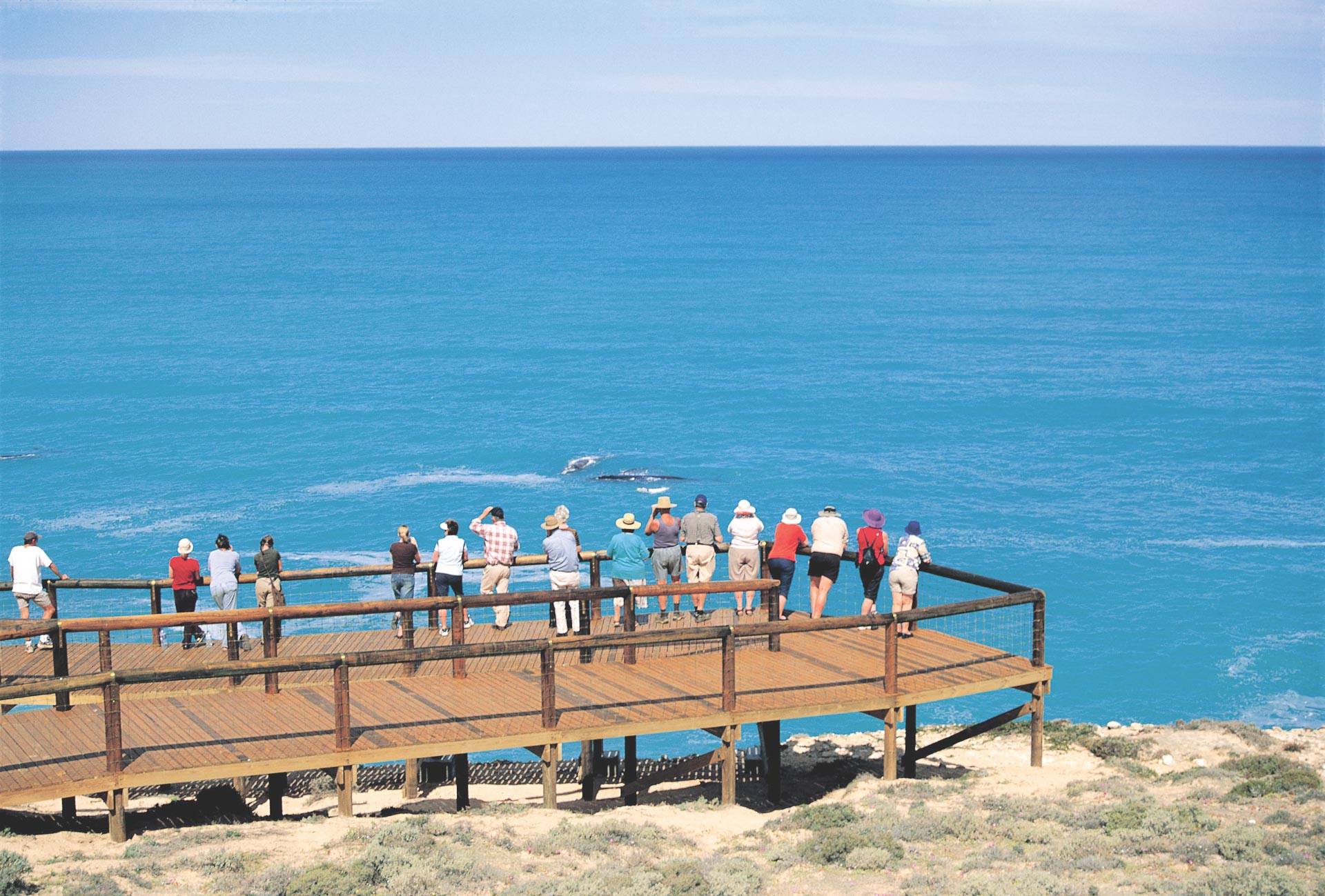 This morning we have an early breakfast and depart Ceduna for the Head of Bight. Every year thousands of people visit the Head of Bight area for breathtaking views of migrating southern right whales. This area is considered one of the best viewing areas in the world with up to 100 whales congregating in the seas adjacent to the Bunda Cliffs at any one time. A large viewing platform offers people safety from the cliffs but also fantastic views.