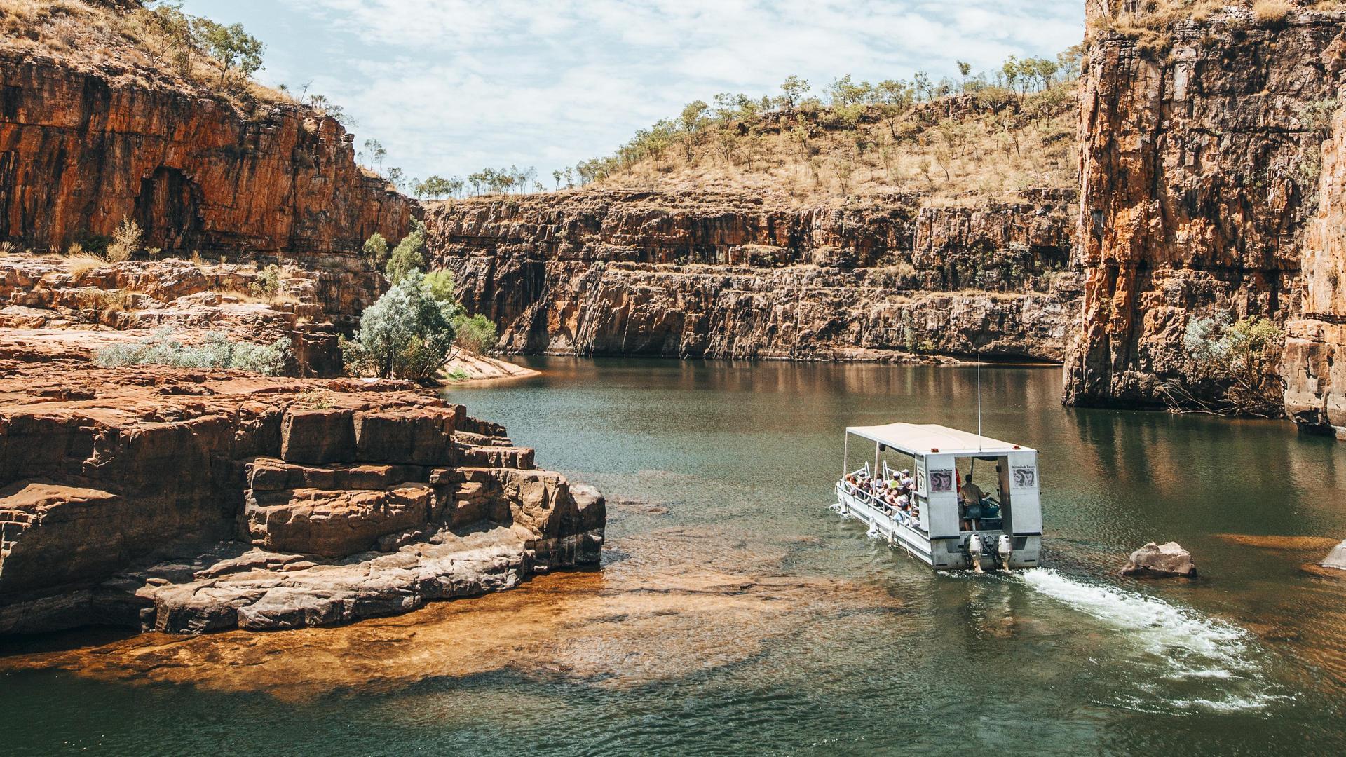 Transfer by coach to the Darwin Rail Terminal. Settle into the comforts of The Ghan, relax in your cabin, or mingle with fellow travellers in the Outback Explorer Lounge. Enjoy lunch ahead of your Off Train Experience in Katherine. In a region renowned for jaw-dropping natural assets, Katherine boasts one of the Top End’s best – the incredible Nitmiluk Gorge and a cruise is on offer to showcase the beauty of this spot. Alternatively, the Katherine Outback Experience lets you into the lives of those who call the outback home, while the Cutta Cutta Cave system is home to a variety of native wildlife and is rich in Indigenous culture and modern European history. Alternatively, take it all in from the air, with an optional upgrade helicopter flight over Nitmiluk. Meals (B,L,D)